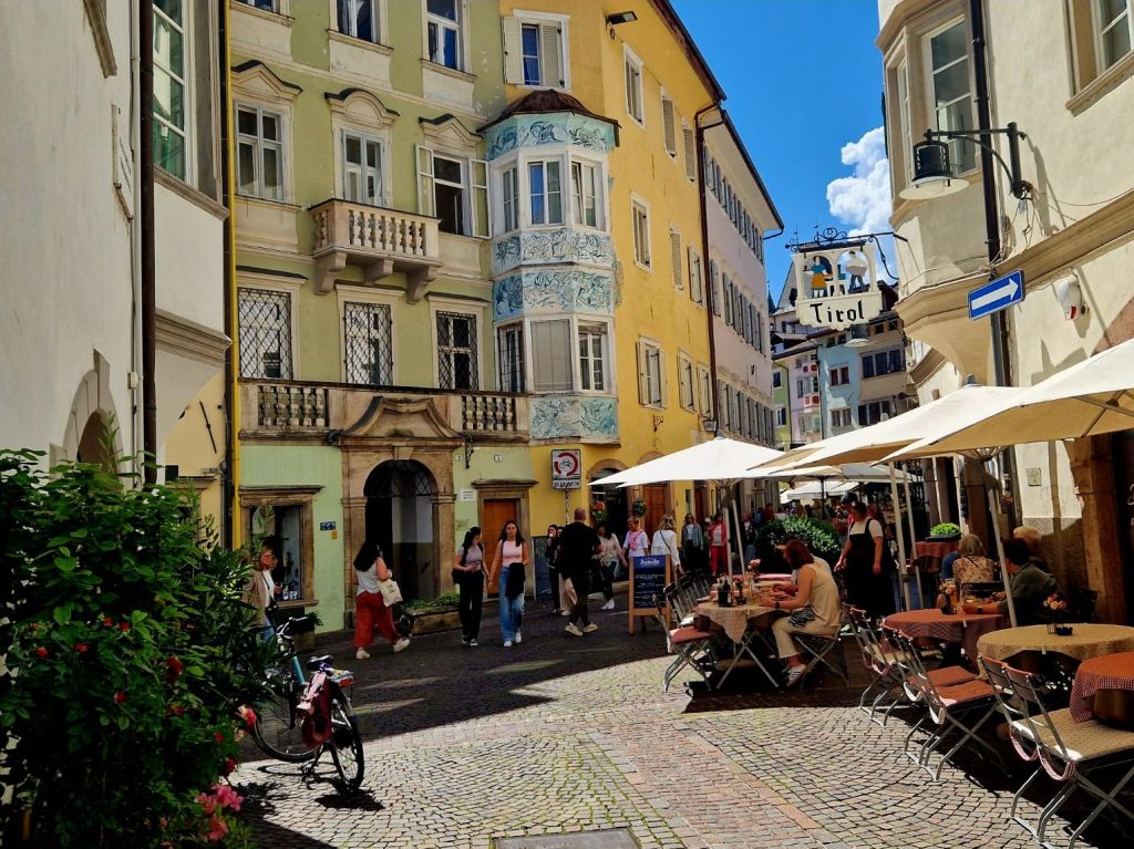 Ein gemütlicher Bummel durch die Altstadt von Bozen gehört einfach dazu. In den verwinkelten Gassen pulsiert das Leben – die Menschen sitzen entspannt draussen, plaudern, nippen am Apéro und geniessen das mediterrane Flair. Besonders empfehlenswert: ein Abstecher zur Oswald Promenade. Von hier oben öffnet sich ein herrlicher Blick über die Stadt bis hin zu den umliegenden Bergen – ein perfekter Ort, um einmal tief durchzuatmen und Südtirol auf sich wirken zu lassen.