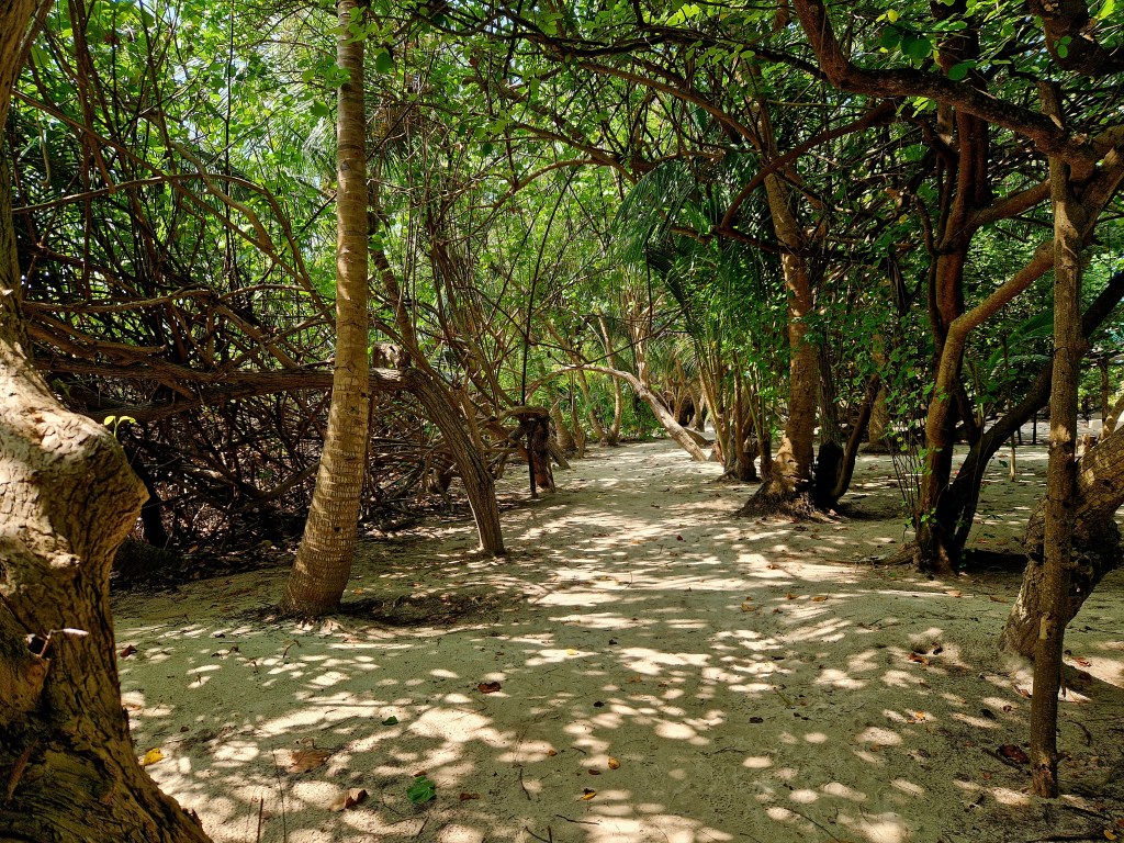 Erwartet habe ich ein paar Palmen. Gelandet bin ich im Mini-Dschungel von Embudu, üppig, raschelnd und voller Leben. Bei jedem Spaziergang entdecke ich etwas Neues: eine Blüte, die plötzlich da ist, ein schüchterner Gecko oder Krebse, die seitlich davon sprinten.